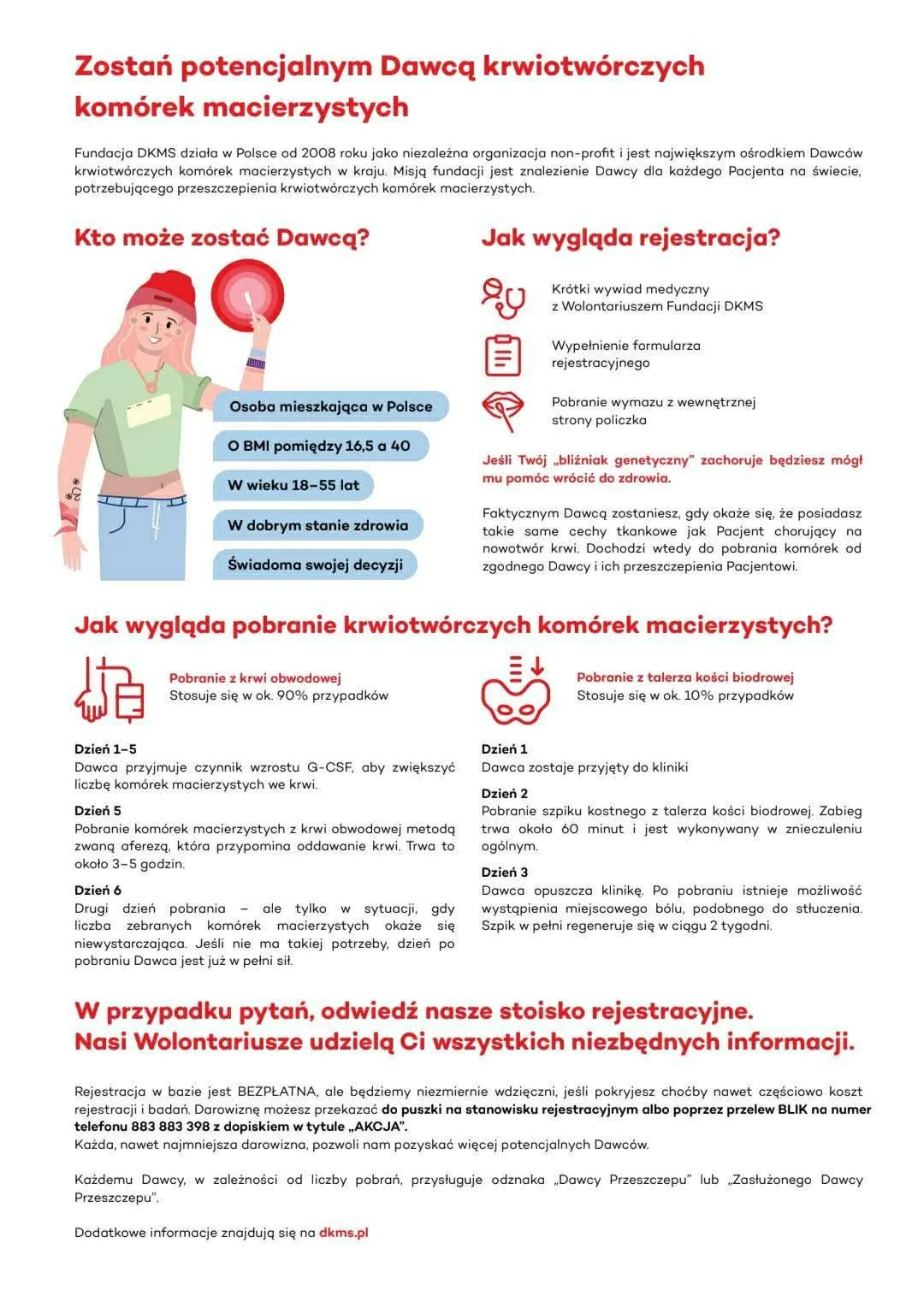 Rejestracja jako potencjalny dawca jest BEZPŁATNA i polega na przeprowadzeniu krótkiego wywiadu medycznego oraz pobraniu wymazu z wewnętrznej strony policzka.