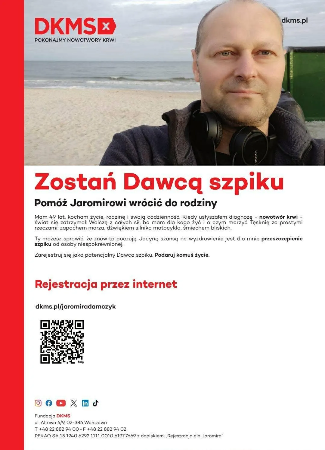 Wśród pacjentów oczekujących na swojego "bliźniaka genetycznego" jest Jaromir, 49-latek, u którego zdiagnozowano nowotwór krwi. Mieszkaniec Bojana pilnie potrzebuje przeszczepu szpiku kostnego oraz regularnych przetoczeń krwi, aby móc walczyć ze szpiczakiem mnogim, z którym zmaga się od 10 lat.