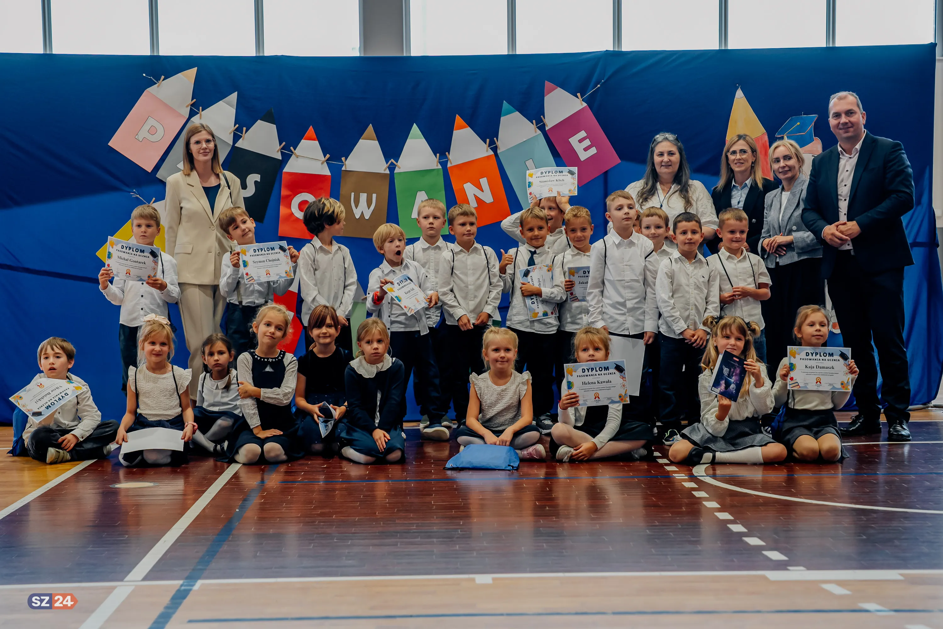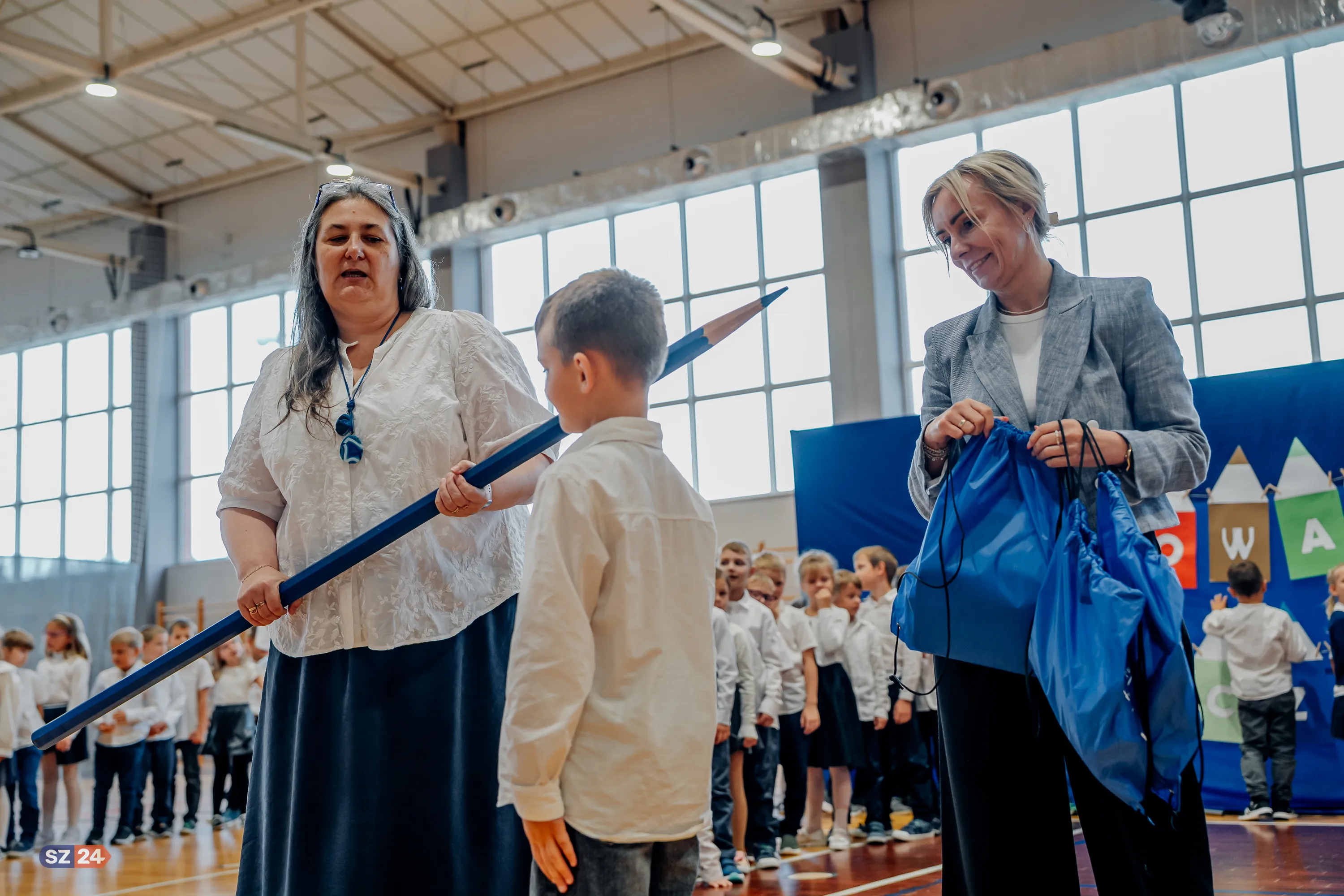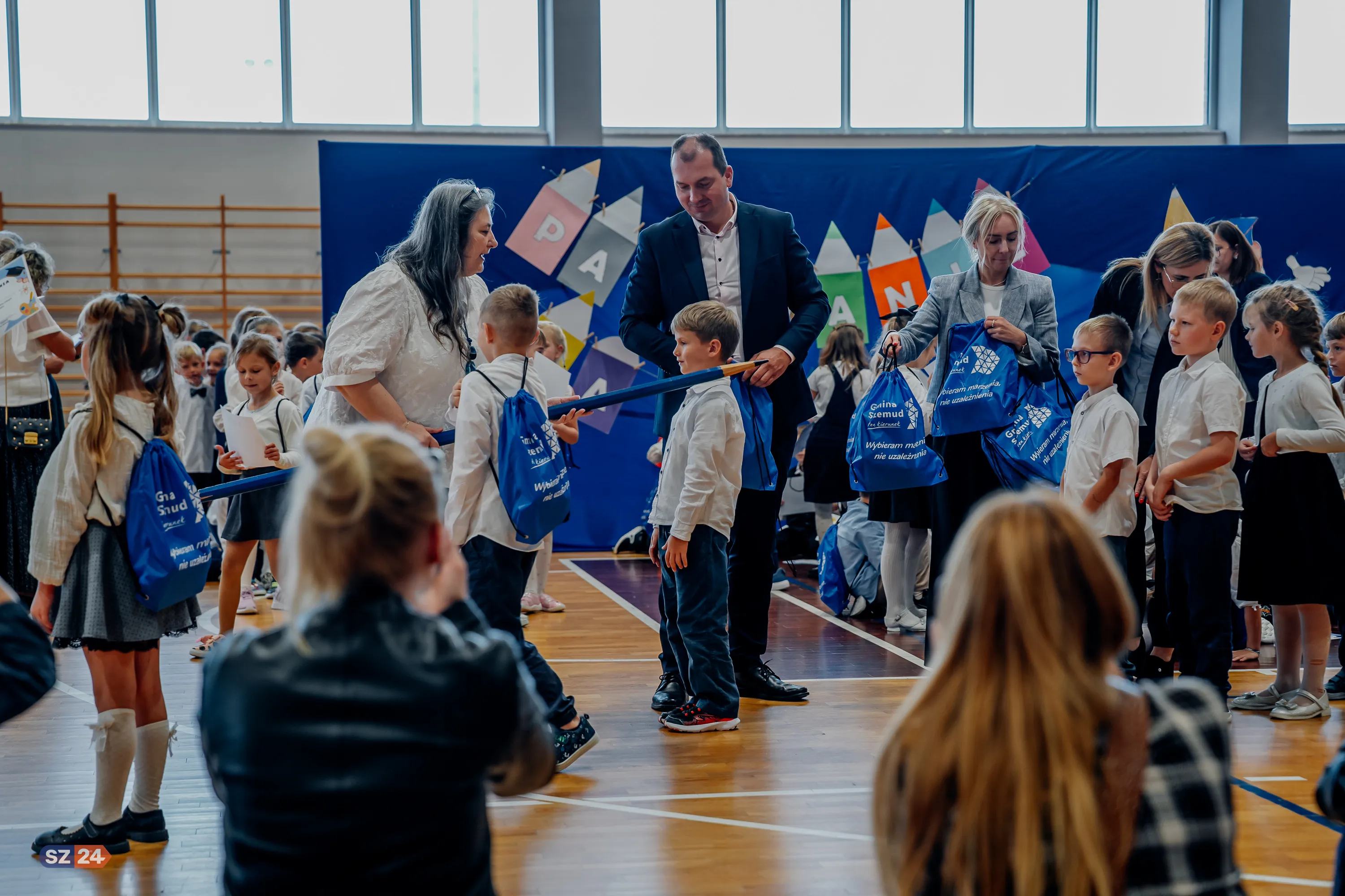 Każde z dzieci, oprócz zaszczytu bycia pasowanym, otrzymało pamiątkowy upominek ufundowany przez Gminę. W paczkach znalazły się nie tylko przydatne przybory szkolne, ale także voucher na trzy bezpłatne wejścia na basen w Kielnie. To doskonała zachęta do aktywnego spędzania czasu po lekcjach.