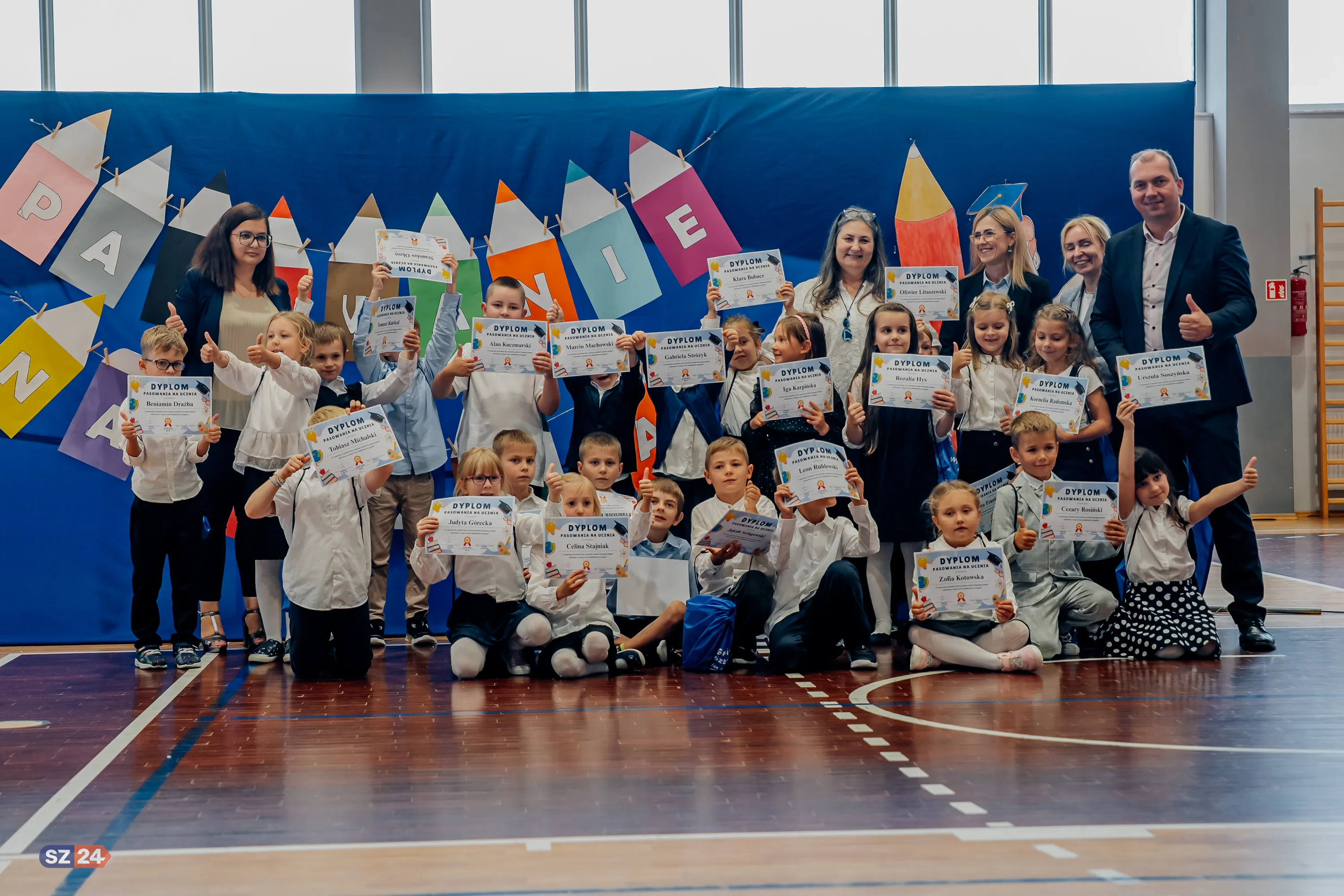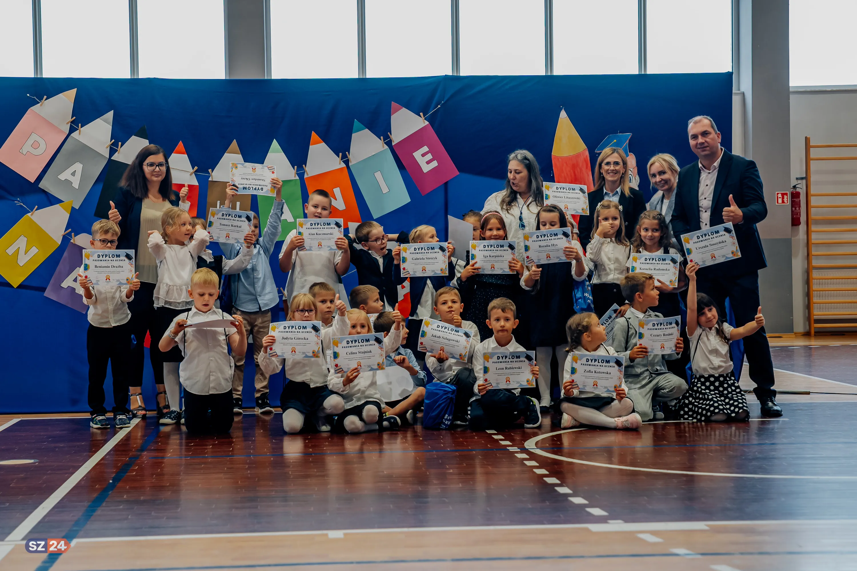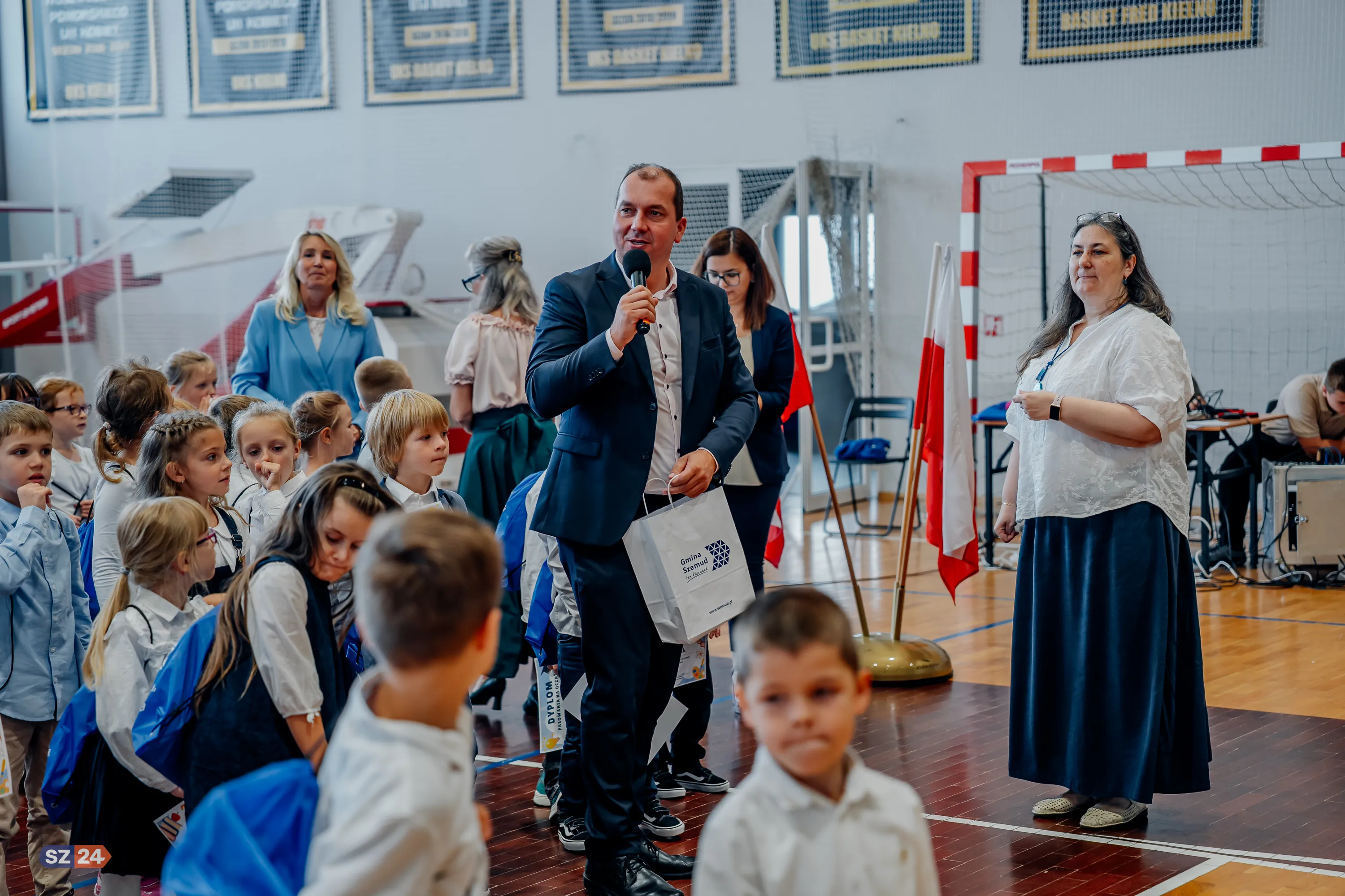 Każde z dzieci, oprócz zaszczytu bycia pasowanym, otrzymało pamiątkowy upominek ufundowany przez Gminę. W paczkach znalazły się nie tylko przydatne przybory szkolne, ale także voucher na trzy bezpłatne wejścia na basen w Kielnie. To doskonała zachęta do aktywnego spędzania czasu po lekcjach.