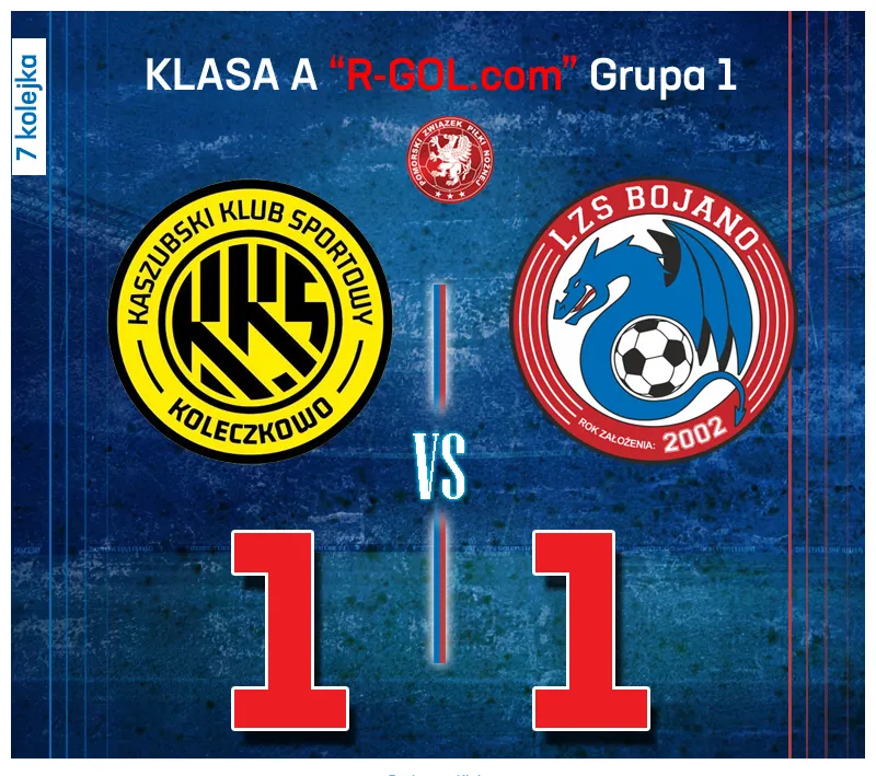 W minioną sobotę, na stadionie KKS Koleczkowo, kibice byli świadkami zaciętych derbów w ramach 7. kolejki A-klasy "R-GOL.com". KKS Koleczkowo zmierzył się z drużyną LZS Dragon Bojano, a mecz zakończył się podziałem punktów po remisie 1:1.