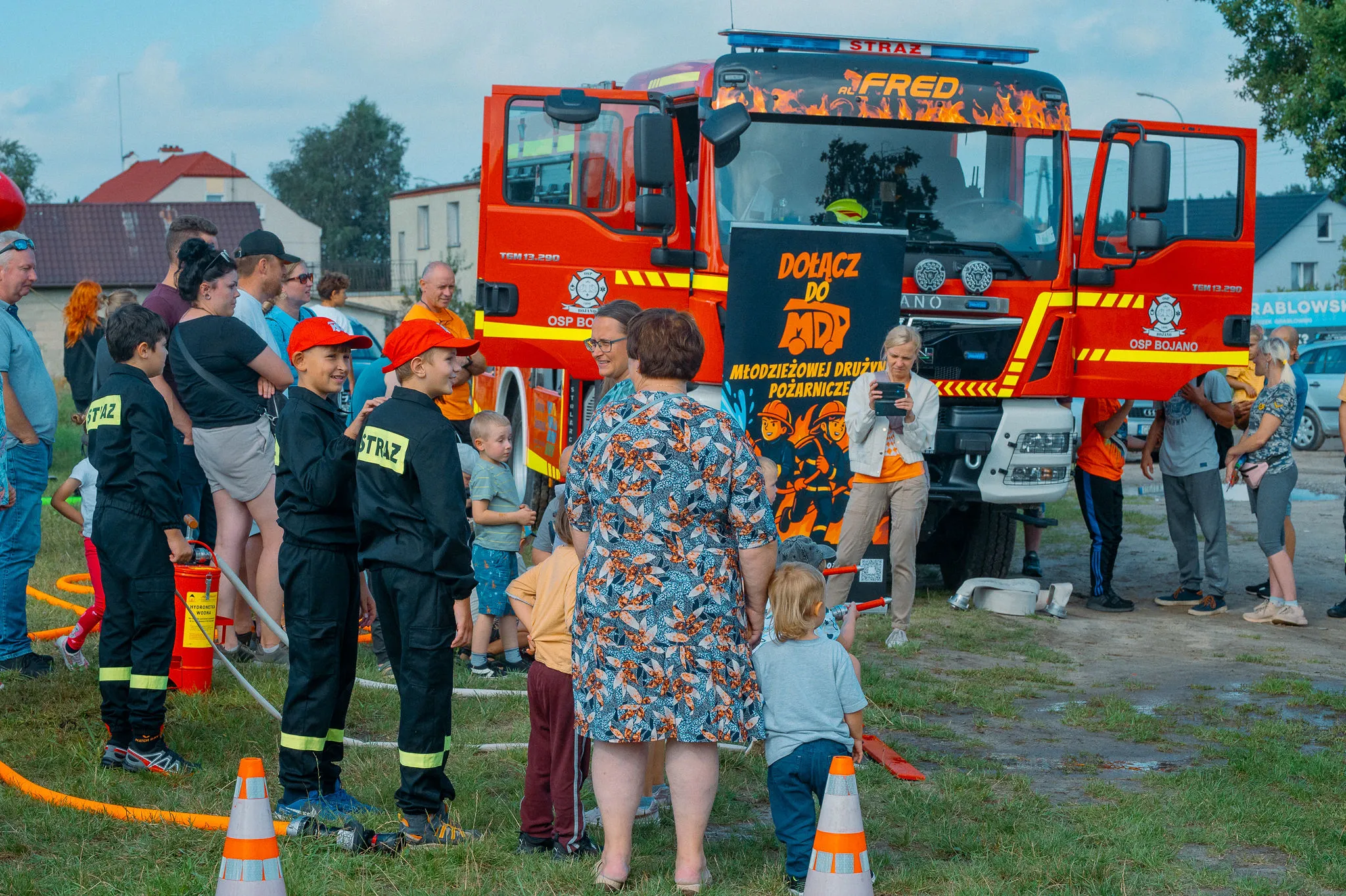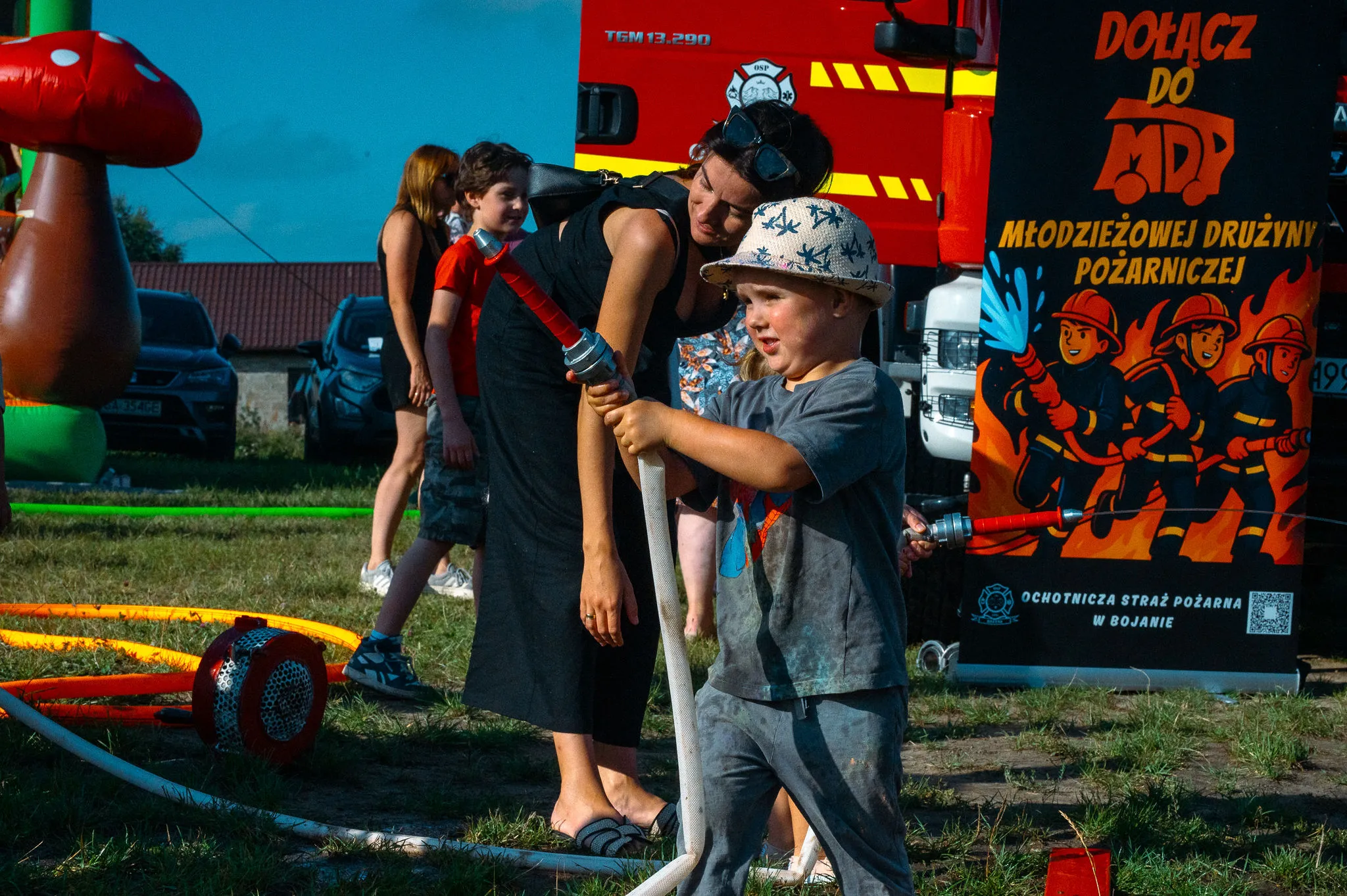 Ochotnicza Straż Pożarna w Bojanie wystawiła swoje wozy bojowe i przygotowała widowiskową kąpiel w pianie oraz konkurencje powiązane z pracą strażaka.