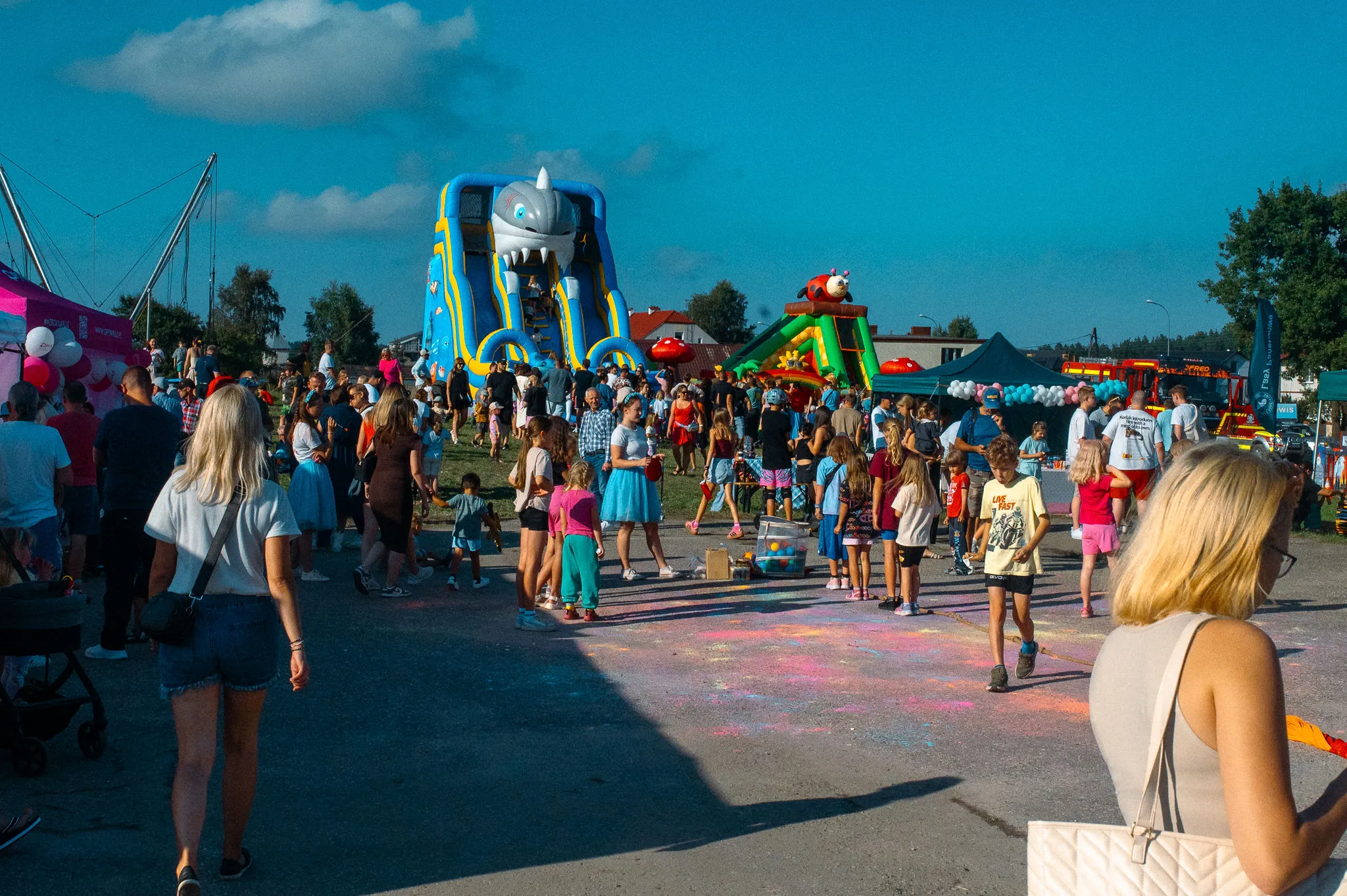 Na wszystkich uczestników festynu czekało mnóstwo atrakcji. Organizatorzy zadbali o to, by zarówno starsi, jak i młodsi, znaleźli coś dla siebie.Z myślą o najmłodszych przygotowano dmuchańce, trampoliny oraz wiele gier i zabaw. Dużo radości i kolorowych wspomnień dostarczył również huczny wyrzut proszków.