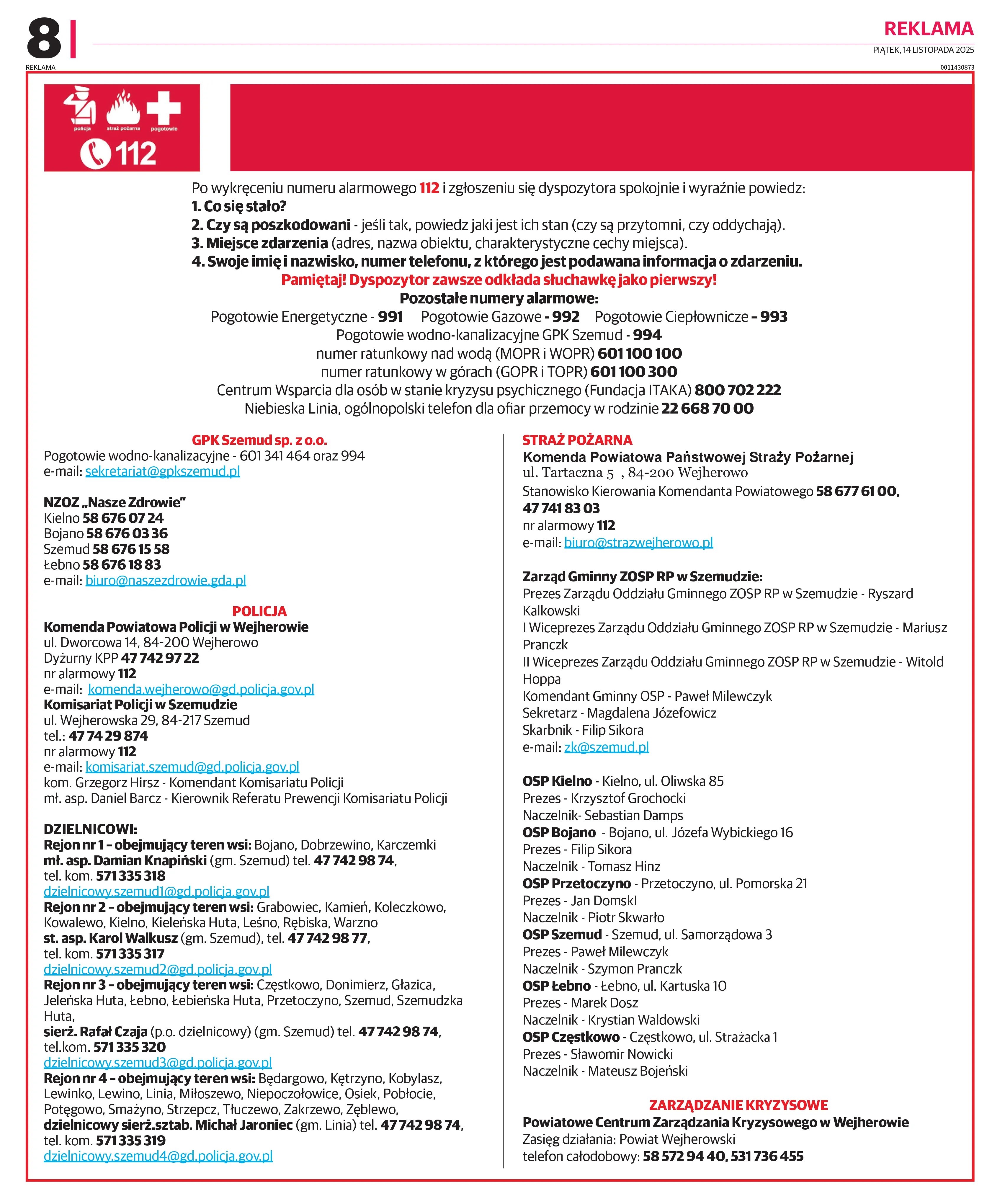 Bezpieczeństwo naszej społeczności zależy od wspólnego przygotowania i wzajemnego wsparcia w trudnych chwilach. Kluczowym elementem ochrony rodziny jest wiedza o tym, jak reagować w sytuacjach kryzysowych oraz jak skutecznie współpracować z lokalnym samorządem, który koordynuje działania ratunkowe na terenie gminy. W minionym tygodniu w Centrum Samorządowym w Szemudzie odbyło się szkolenie z ochrony ludności i obrony cywilnej dla sołtysów oraz dyrektorów szkół. W najbliższym czasie materiały edukacyjne będą rozprowadzane wśród mieszkańców w sołectwach gminy Szemud.