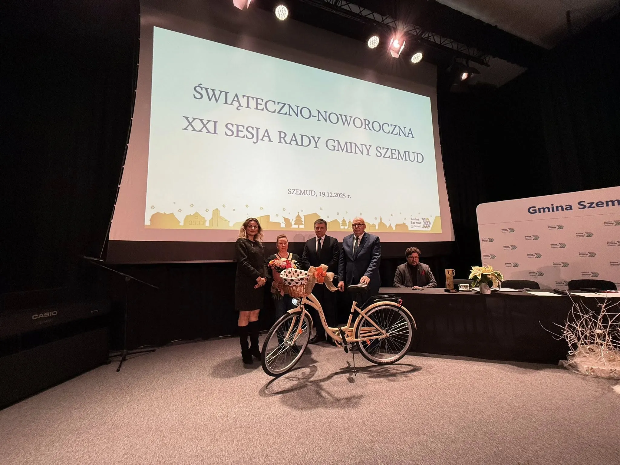 Podczas sesji wręczono nagrodę w konkursie meldunkowym, który gmina prowadzi od 10 lat. Kierownik referatu, Kazimierz Potrykus, przekazał nagrodę – rower – Pani Iwonie z Grabowca. Świąteczny klimat zapewniły występy dzieci z przedszkola "Zielony Zakątek" w Bojanie. Po części artystycznej odbyło się wspólne kolędowanie, któremu przewodniczył proboszcz parafii w Szemudzie, ks. dr hab. Robert Kaczorowski.