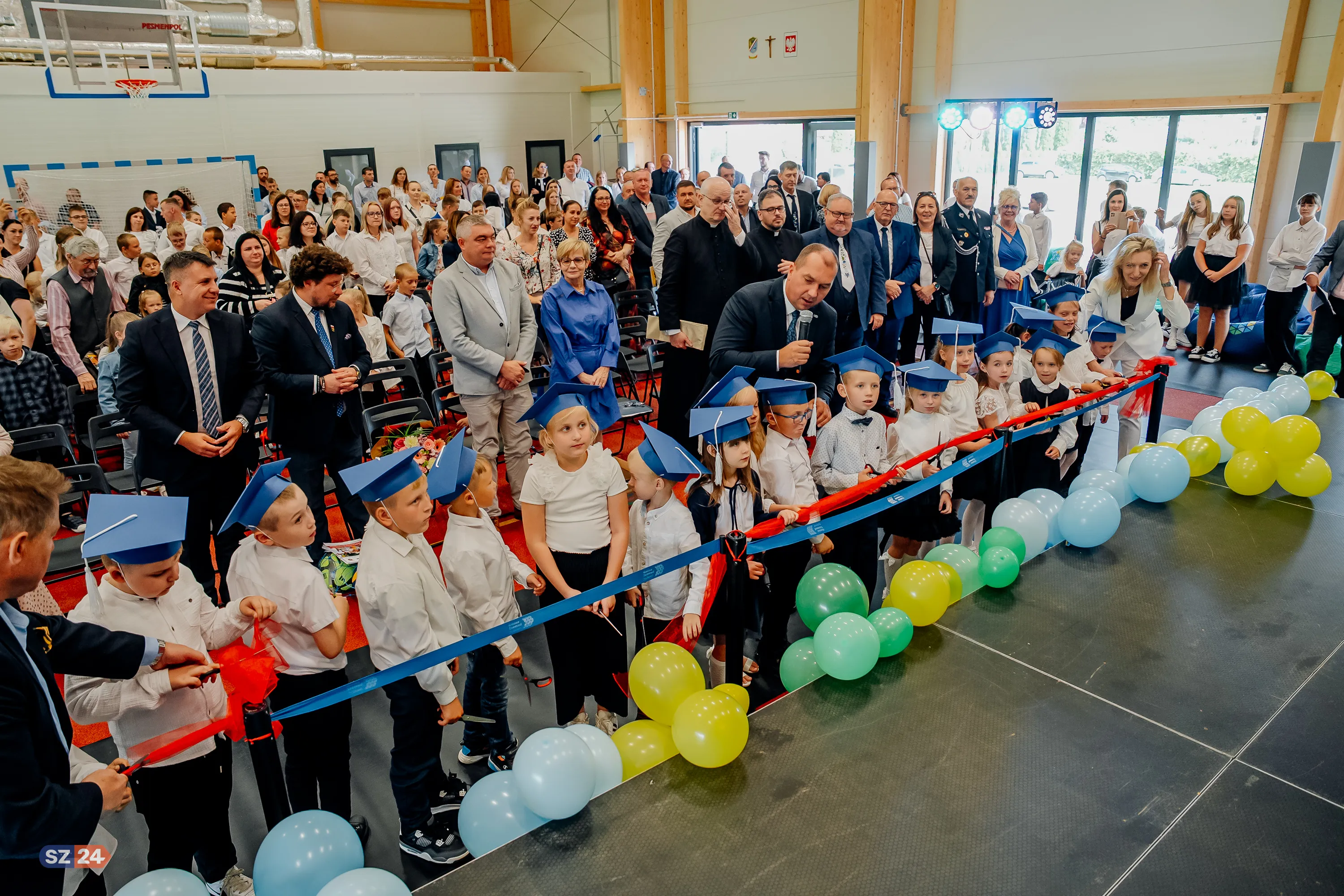 Wczoraj, 1 września, w Szkole Podstawowej w Jeleńskiej Hucie odbyło się uroczyste Gminne Rozpoczęcie Roku Szkolnego. Tegoroczna inauguracja była wyjątkowa, ponieważ połączono ją z wyczekiwanym otwarciem pierwszej w Gminie Szemud hali sportowej, zrealizowanej w ramach „Programu Olimpia” Ministerstwa Sportu i Turystyki. Uroczystość rozpoczęła się od symbolicznego przecięcia wstęgi przy wejściu do nowego obiektu. W ten sposób oficjalnie otwarto wielofunkcyjny obiekt sportowy.