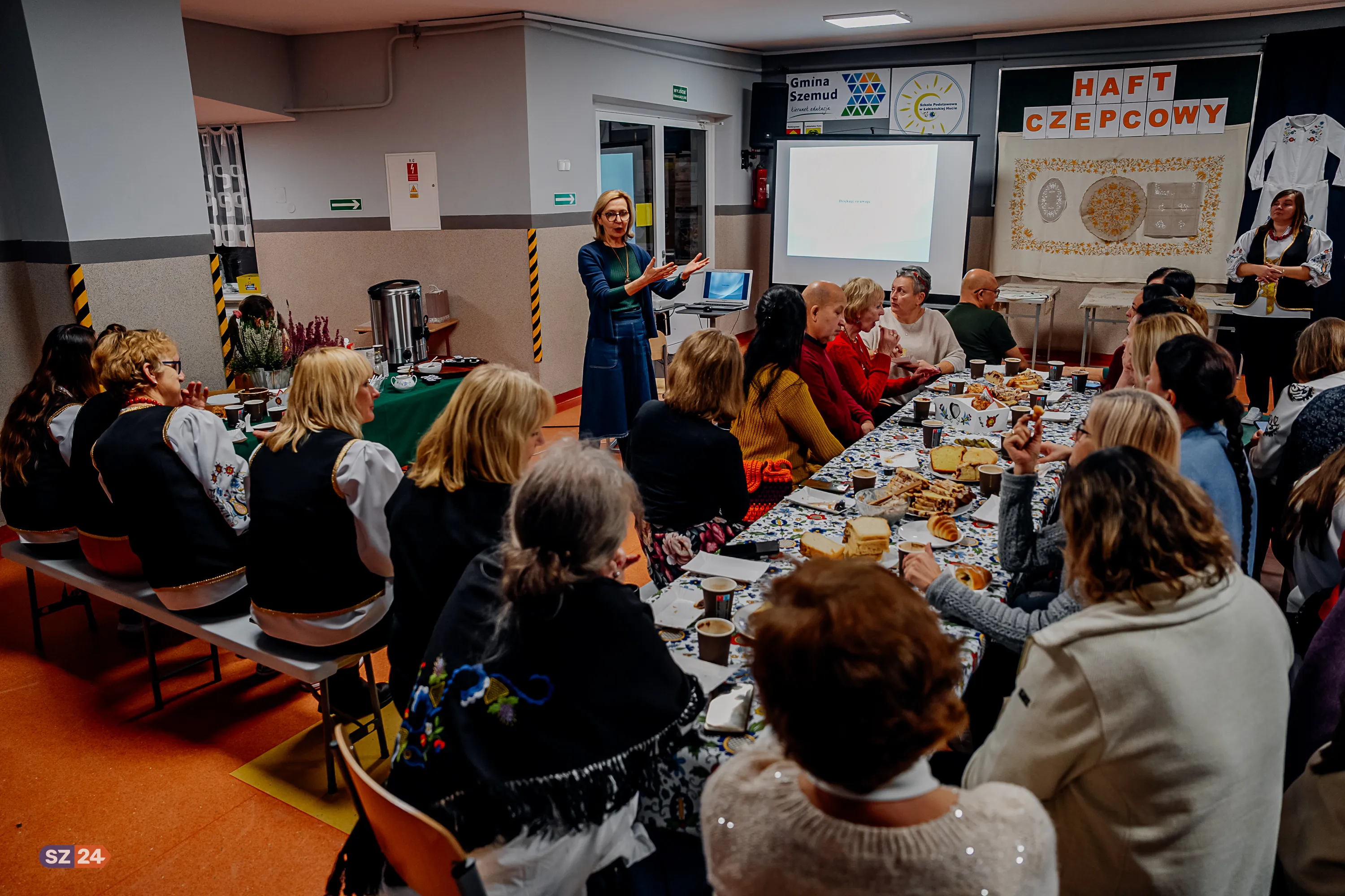 Na spotkaniu były obecne członkinie Klubu Haftu Kaszubskiego „Tulpa” z Wejherowa. Hafciarki zrzeszone w Klubie Zrzeszenia Kaszubsko-Pomorskiego, z których część haftuje już od 30 lat, prezentowały swoje prace i dzieliły się swoimi pasjami. Wspominały, że ta misterna sztuka wymaga nie tylko talentu, ale przede wszystkim cierpliwości, dobrego wzroku i poświęcenia czasu – wykonanie tak złożonej pracy, jak obrus, może trwać od 3 do 6 miesięcy.