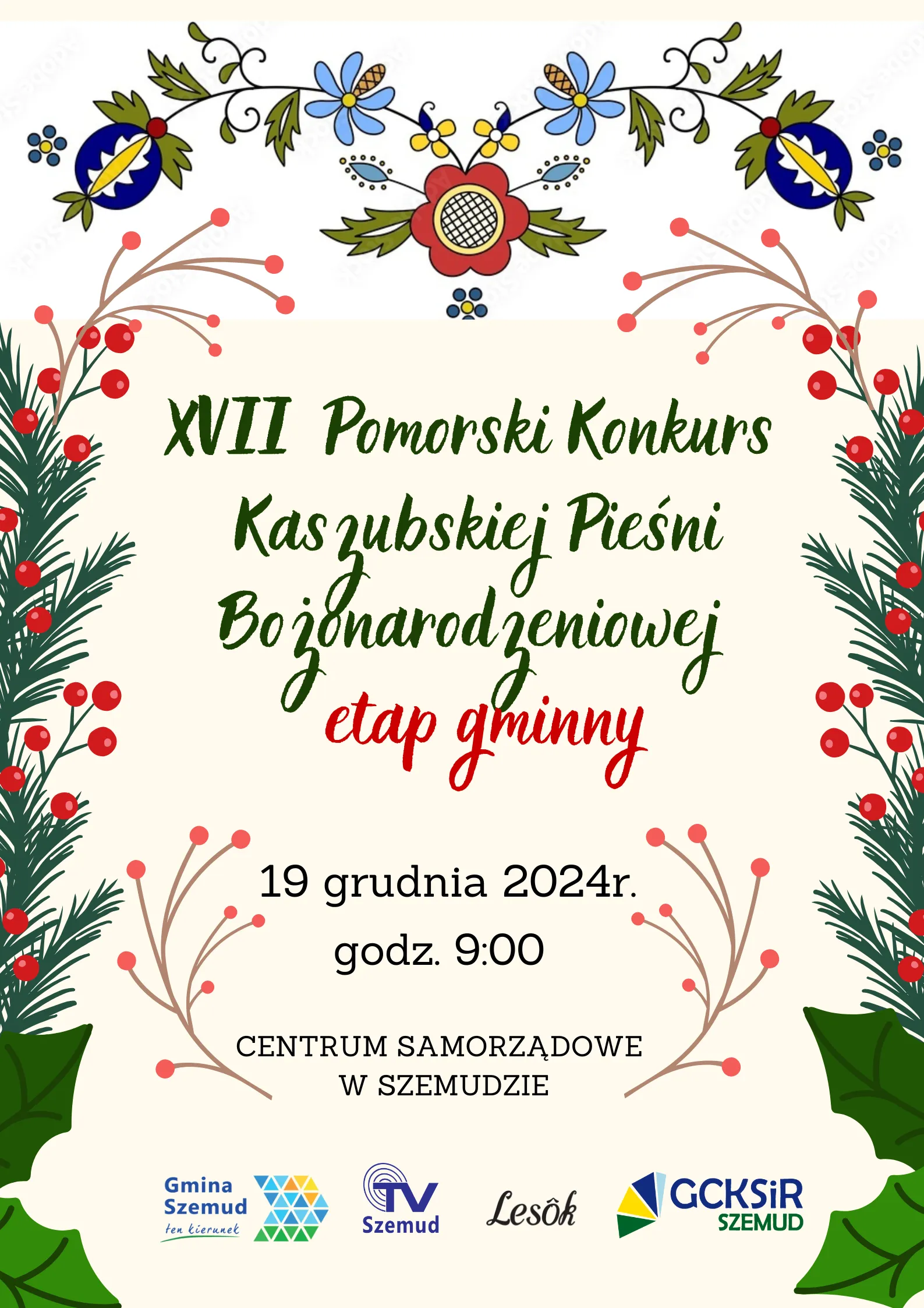 Uczniowie przedszkoli oraz szkół podstawowych z gminy Szemud mają możliwość wzięcia udziału w XVII Pomorskim Konkursie Kaszubskiej Pieśni Bożonarodzeniowej. Wydarzenie odbędzie się 19 grudnia 2024 roku (czwartek) o godzinie 9:00 w Centrum Samorządowym w Szemudzie. To wyjątkowa okazja, aby zaprezentować talenty muzyczne i świąteczne tradycje kaszubskie. Zgłoszenia przyjmowane są do 12 grudnia.
