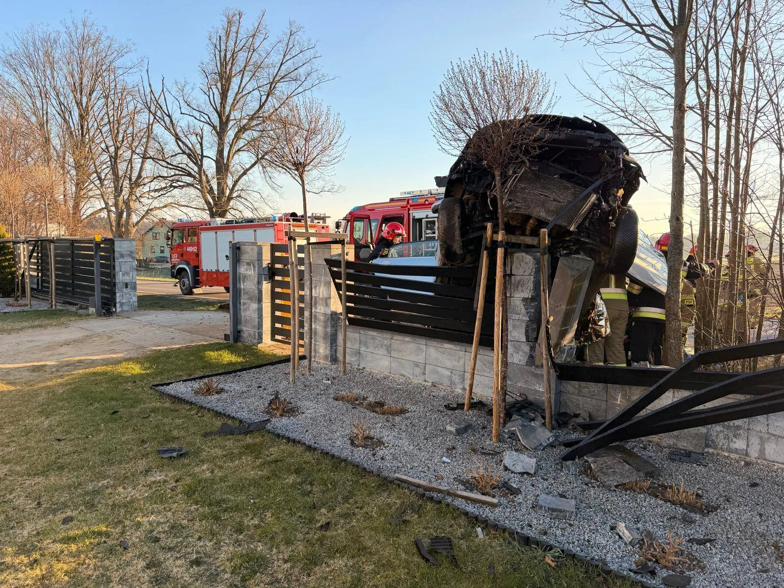 Do zdarzenia doszło w sobotę, 18 kwietnia, około godziny 6:30 na ulicy Kartuskiej. Służby ratunkowe otrzymały zgłoszenie o samochodzie osobowym, który uderzył w płot. Na miejsce natychmiast zadysponowano policję, ratowników medycznych oraz zastępy straży pożarnej z Kartuz i Wejherowa, a także druhów z OSP Łebno i OSP Pomieczyno.