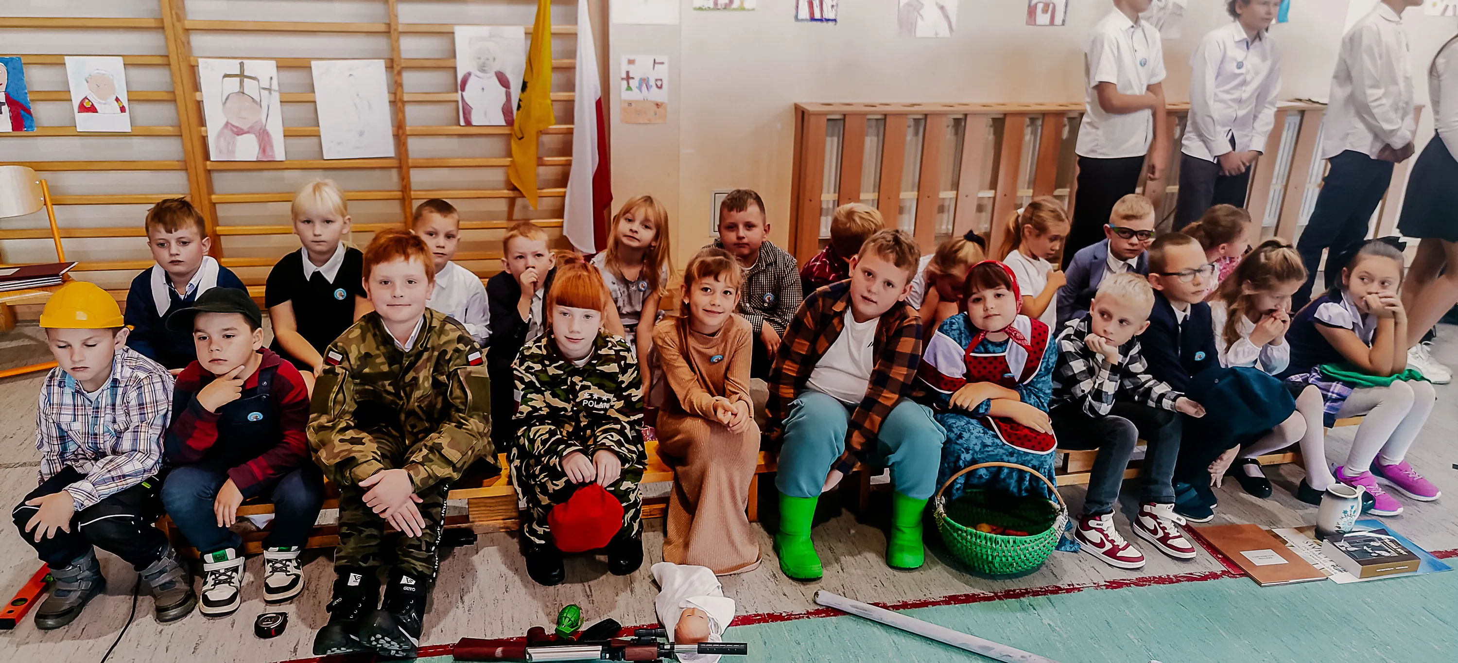 Po ceremonii na skwerze, uroczystości przeniosły się do Szkoły Podstawowej im. Jana Pawła II. Uczniowie przygotowali inspirujący program artystyczny poświęcony postaci Ojca Świętego oraz przypomnieli zgromadzonym historię wyboru patrona szkoły.
