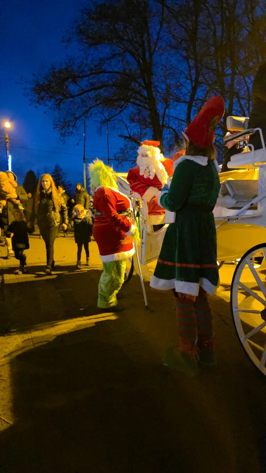 Świąteczne widowisko w Kamieniu rozpoczęło się od pojawienia się Grincha, który wprowadził wszystkich w nastrój radosnej zabawy. Chwilę później przybył Święty Mikołaj w pięknej karocy, ciągniętej przez orszak dwóch koni. W specjalnie przygotowanej Grocie każde dziecko mogło spotkać Mikołaja osobiście, otrzymując prezenty w atmosferze uścisków i uśmiechów. Specjalnie przygotowana sceneria tylko dodała magii całemu spotkaniu.