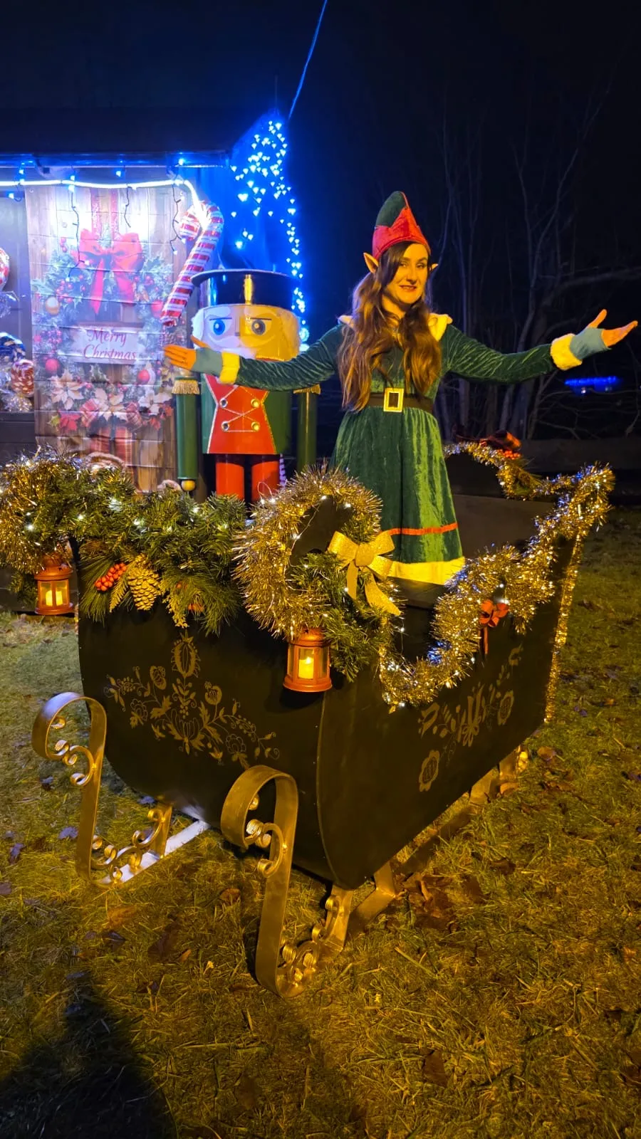 Jednym z ważnych elementów Groty była budowa sań. Panie z KGW Kaszubski Kamień, które na czas przygotowań wcieliły się w pracowite Elfy, otrzymały płyty od zaprzyjaźnionej firmy z Szemuda. Konstrukcją, charytatywnie zajął się następnie lokalny stolarz. Elfy przystąpiły do malowania i dekorowania, a jedna z Pań z KGW do ręcznie namalowała złote kaszubskie wzory. Ostateczny wygląd sanie zyskały dzięki płozom ufundowanym przez lokalną firmę.