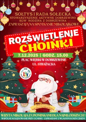 W Dobrzewinie na placu przy ul. Strażackiej odbędzie się uroczyste rozświetlenie choinki. Wydarzenie uświetnią: