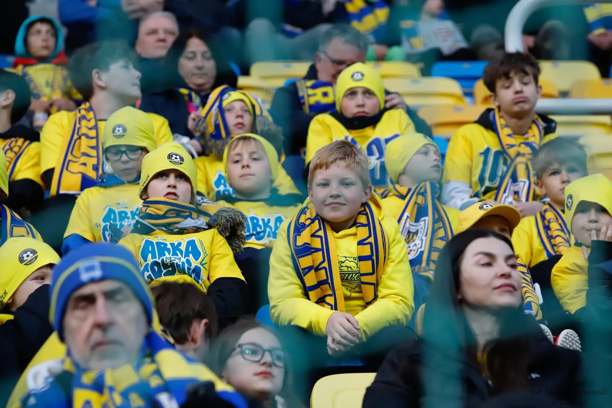 Młodzi sportowcy z Koleczkowa byli doskonale widoczni na całym stadionie dzięki dedykowanym koszulkom i szalikom, które otrzymali specjalnie na tę okazję.