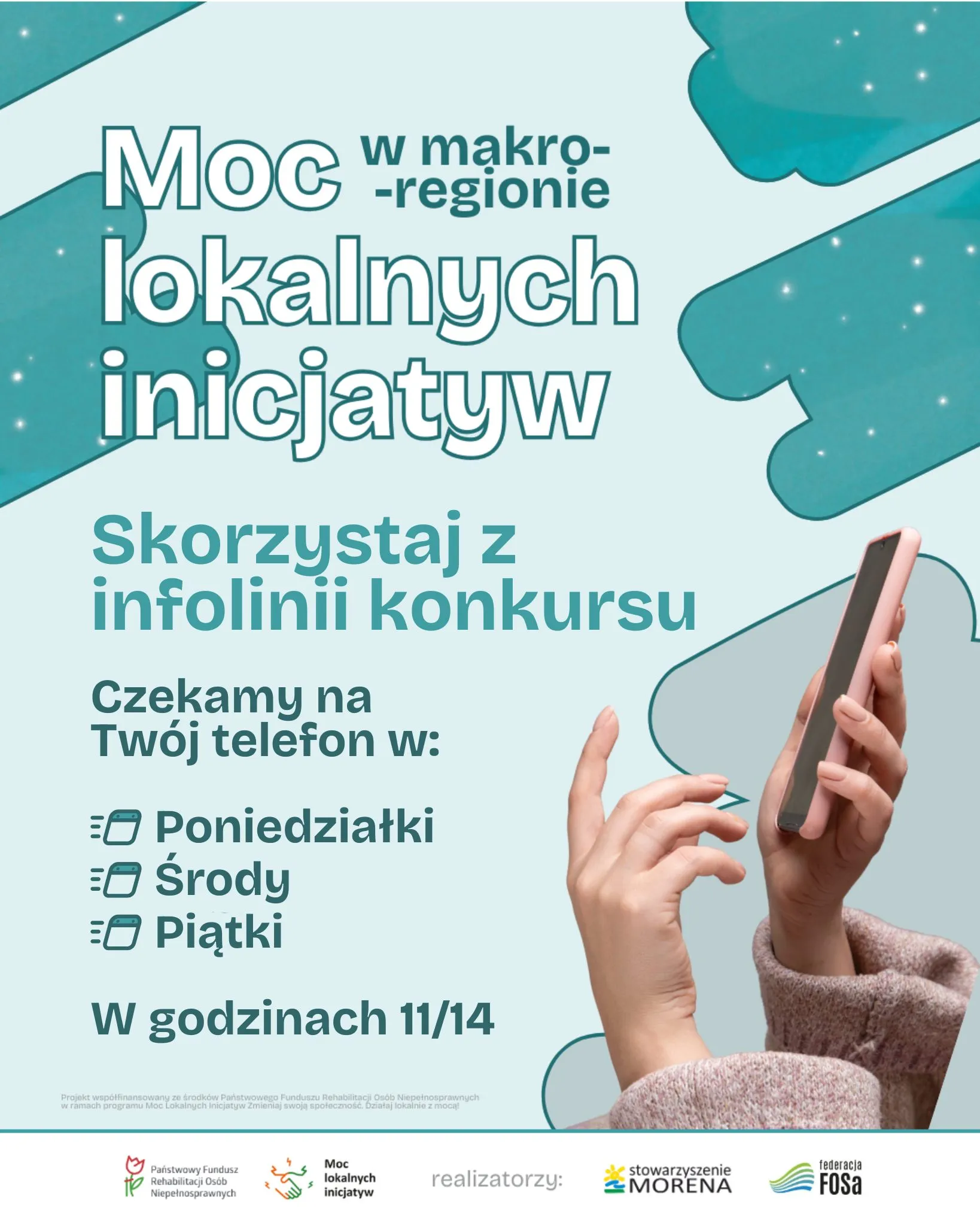 Stowarzyszenie Morena oraz Federacja FOSa ogłaszają start edycji 2025 programu grantowego „Moc lokalnych inicjatyw”. To wyjątkowa szansa dla organizacji pozarządowych z województwa pomorskiego i warmińsko-mazurskiego na pozyskanie środków PFRON na działania blisko ludzi, odpowiadające na realne potrzeby lokalnych społeczności. Celem programu jest wzmocnienie inicjatyw realizowanych na rzecz osób z niepełnosprawnościami oraz ich otoczenia: rodzin, opiekunów i wolontariuszy. Granty mają dotrzeć tam, gdzie dostęp do specjalistycznego wsparcia jest na co dzień utrudniony.