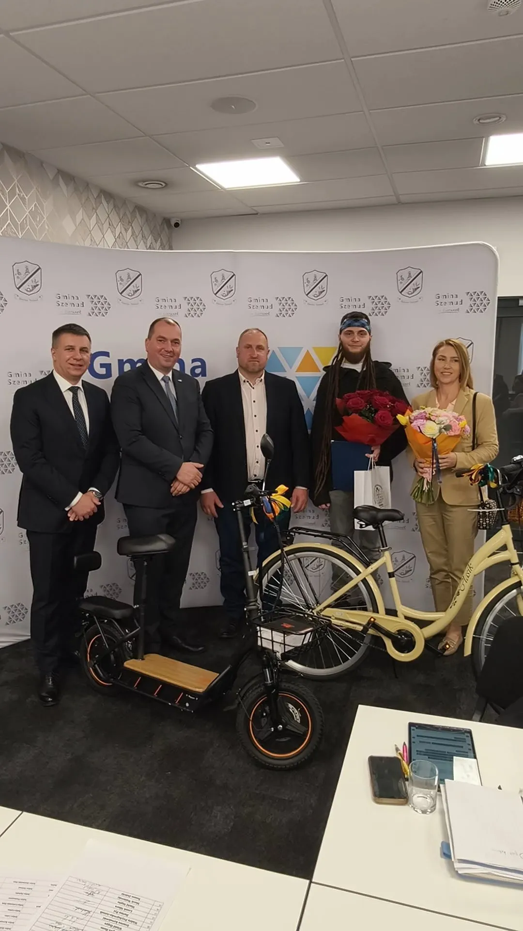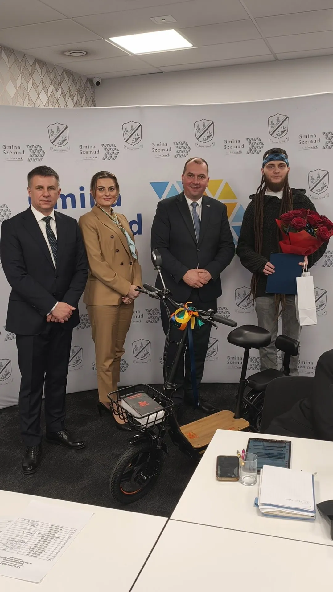 Następnie, Kierownik Referatu Spraw Obywatelskich Kazimierz Potrykus przedstawił najnowsze dane demograficzne Gminy Szemud. Na dzień 31 grudnia 2025 liczba mieszkańców wzrosła do 21 136, na dzień dzisiejszy 21 250. Poznaliśmy laureatkę konkursu meldunkowego za IV kwartał 2025 roku – została nią mieszkanka Koleczkowa, która odebrała nagrodę w postaci roweru. Kolejno ogłoszono także szczęśliwego zwycięzcę, wyłonionego spośród wszystkich nowych mieszkańców roku 2025, który wygrał pojazd elektryczny.