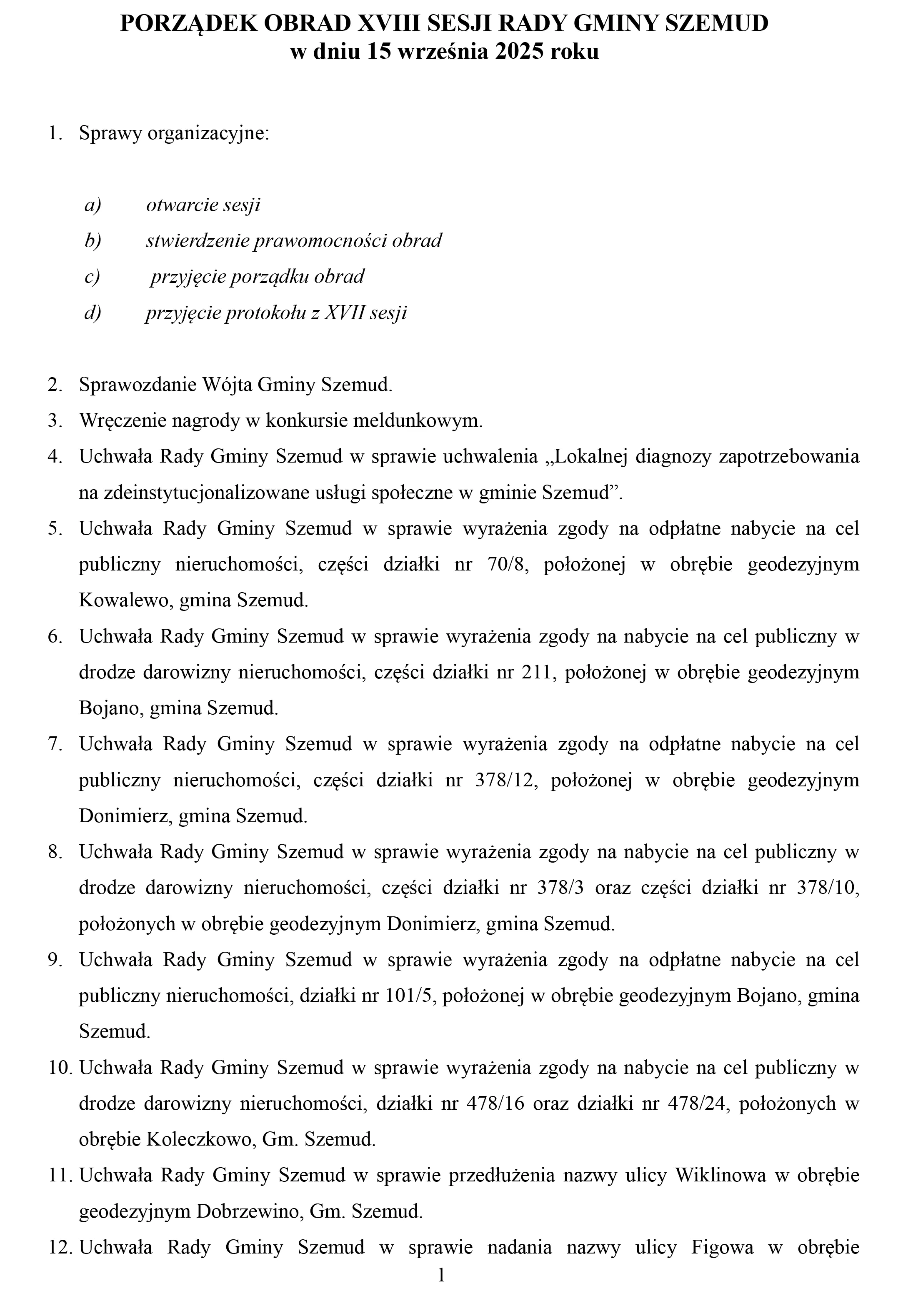 Dzisiaj w Centrum Samorządowym odbyła się XVIII Sesja Rady Gminy Szemud kadencji 2024-2029. Obrady otworzył Przewodniczący Rady, Ireneusz Czarnowski, serdecznie witając wszystkich przybyłych gości. Na sali obecnych było 13 radnych.