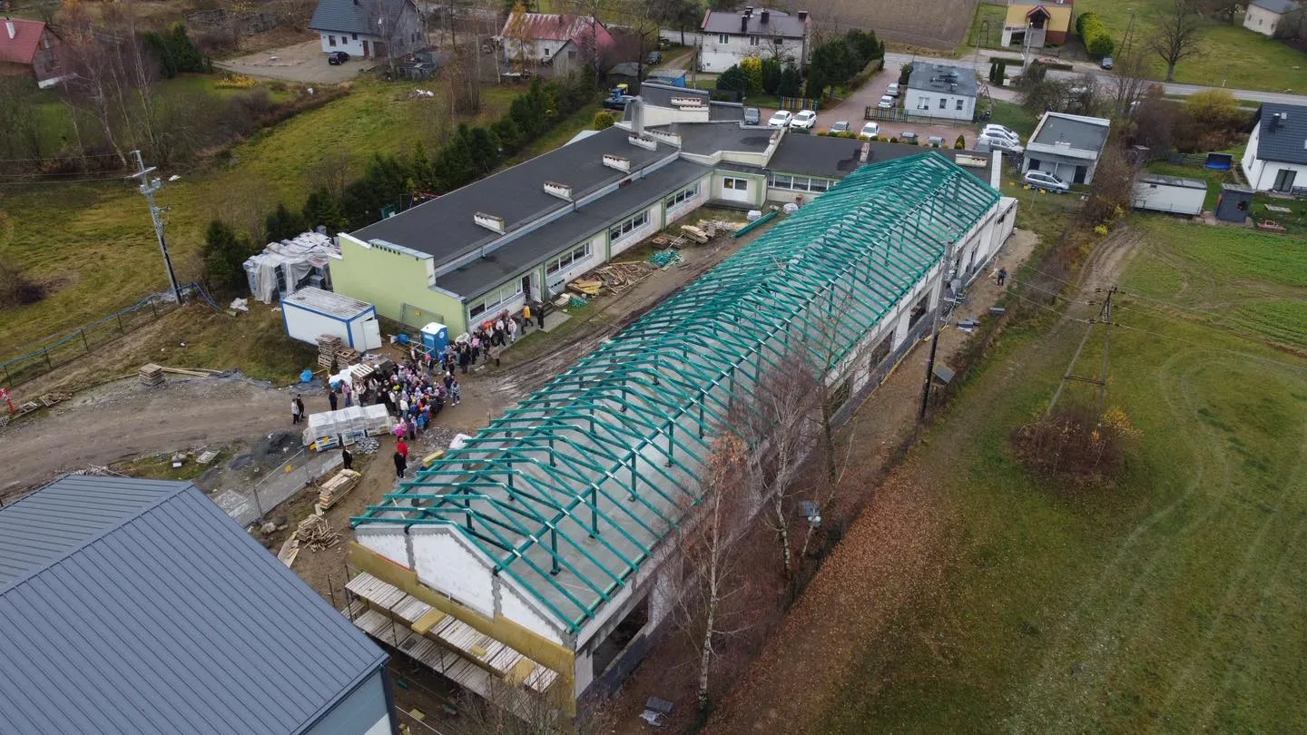 W środę, 12 listopada, Szkoła Podstawowa w Łebieńskiej Hucie uroczyście świętowała zawieszenie tradycyjnej wiechy na konstrukcji dachu budowanego skrzydła. Inwestycja o wartości blisko 5 milionów złotych postępuje zgodnie z harmonogramem i jest odpowiedzią na potrzeby rozwijającej się społeczności.