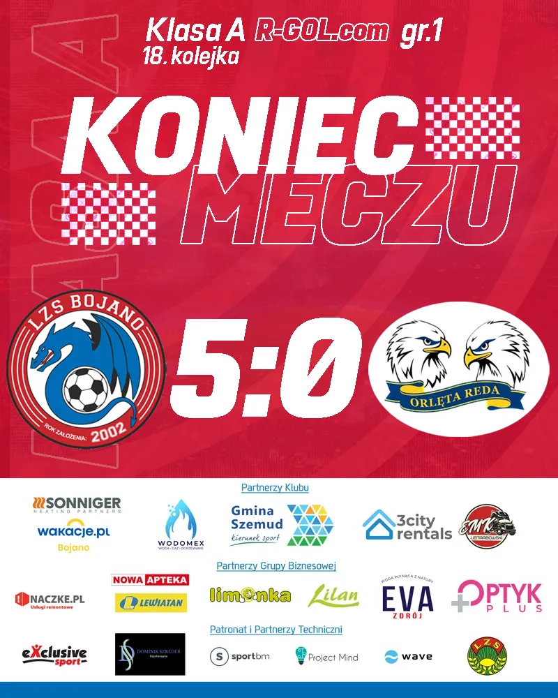 W Bojanie kibice oglądali jednostronne, ale bardzo efektowne widowisko. W 18. kolejce klasy A, LZS Dragon Bojano podejmował Orlęta II Reda. Wynik 5:0 mówi sam za siebie – gospodarze kontrolowali mecz od początku do końca.