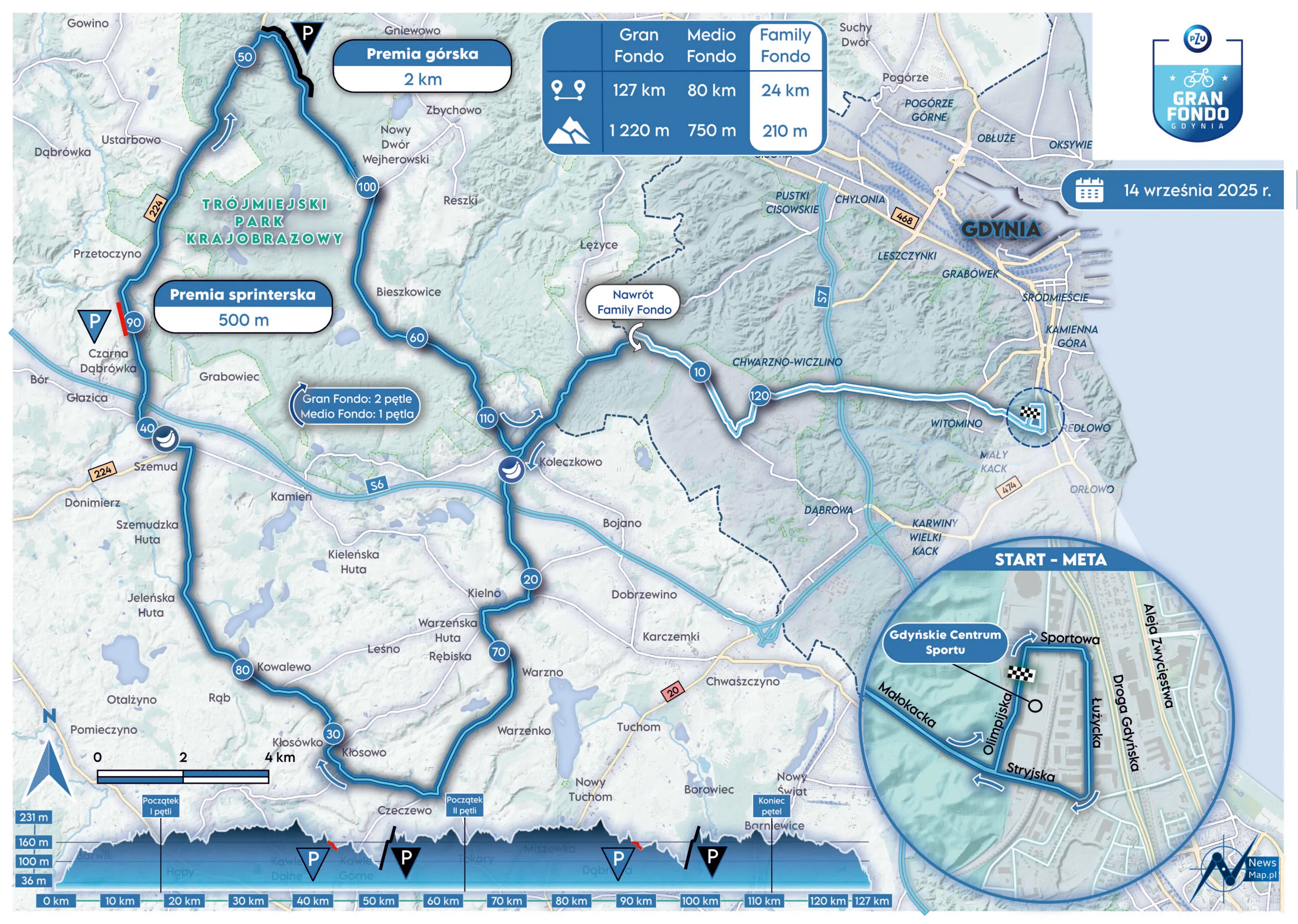 Start i meta wyścigu zlokalizowane są przy Gdyńskim Centrum Sportu.
