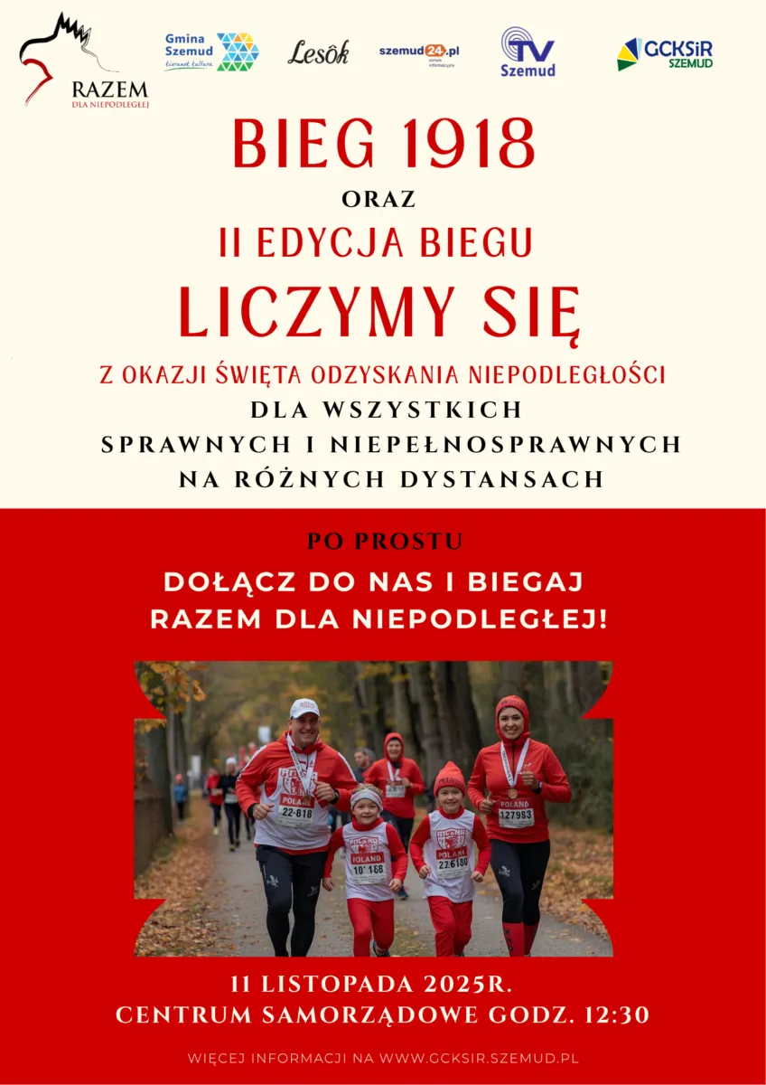 Już we wtorek, 11 listopada 2025 roku świętować będziemy 107. rocznicę Odzyskania Niepodległości przez Polskę. Tego dnia na terenie Gminy Szemud koncentrując się wokół Centrum Samorządowego oraz Parafii św. Mikołaja w Szemudzie odbędą się wydarzenia łączące modlitwę, patriotyczny zryw, sport i kulturę.