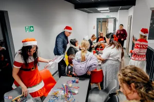 Po tej tradycyjnej części, do sali zawitał specjalny gość, Święty Mikołaj. Rozpoczęła się część rozrywkowa i edukacyjna. Dzieci mogły wziąć udział w konkursie wiedzy, w którym nagrodą były oczywiście prezenty. Emocje wzbudził też konkurs dla rodzin, sprawdzający znajomość bogatych tradycji świątecznych – od Adwentu aż po Święto Trzech Króli.