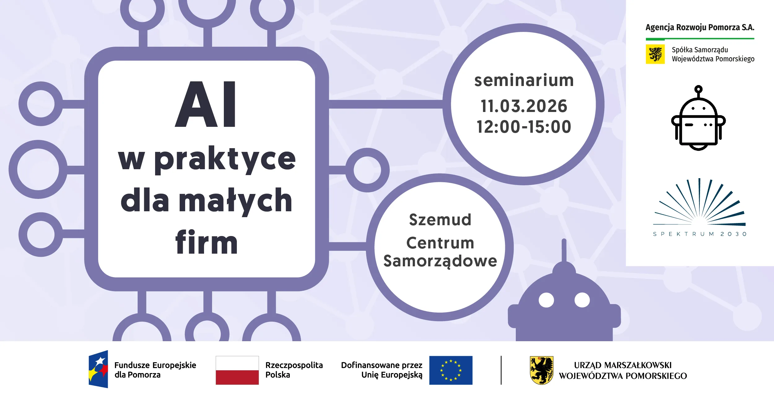11 marca 2026 roku w Centrum Samorządowym w Szemudzie odbędzie się seminarium poświęcone wdrażaniu rozwiązań opartych na sztucznej inteligencji (AI) w przedsiębiorstwach. Wydarzenie ma na celu przybliżenie kadrze zarządzającej narzędzi zwiększających efektywność operacyjną oraz możliwości finansowania doradztwa technologicznego. Seminarium jest realizowane w ramach projektu „Pomorski System Usług Informacyjnych i Doradczych SPEKTRUM 2030”, finansowanego z programu Fundusze Europejskie dla Pomorza 2021–2027.