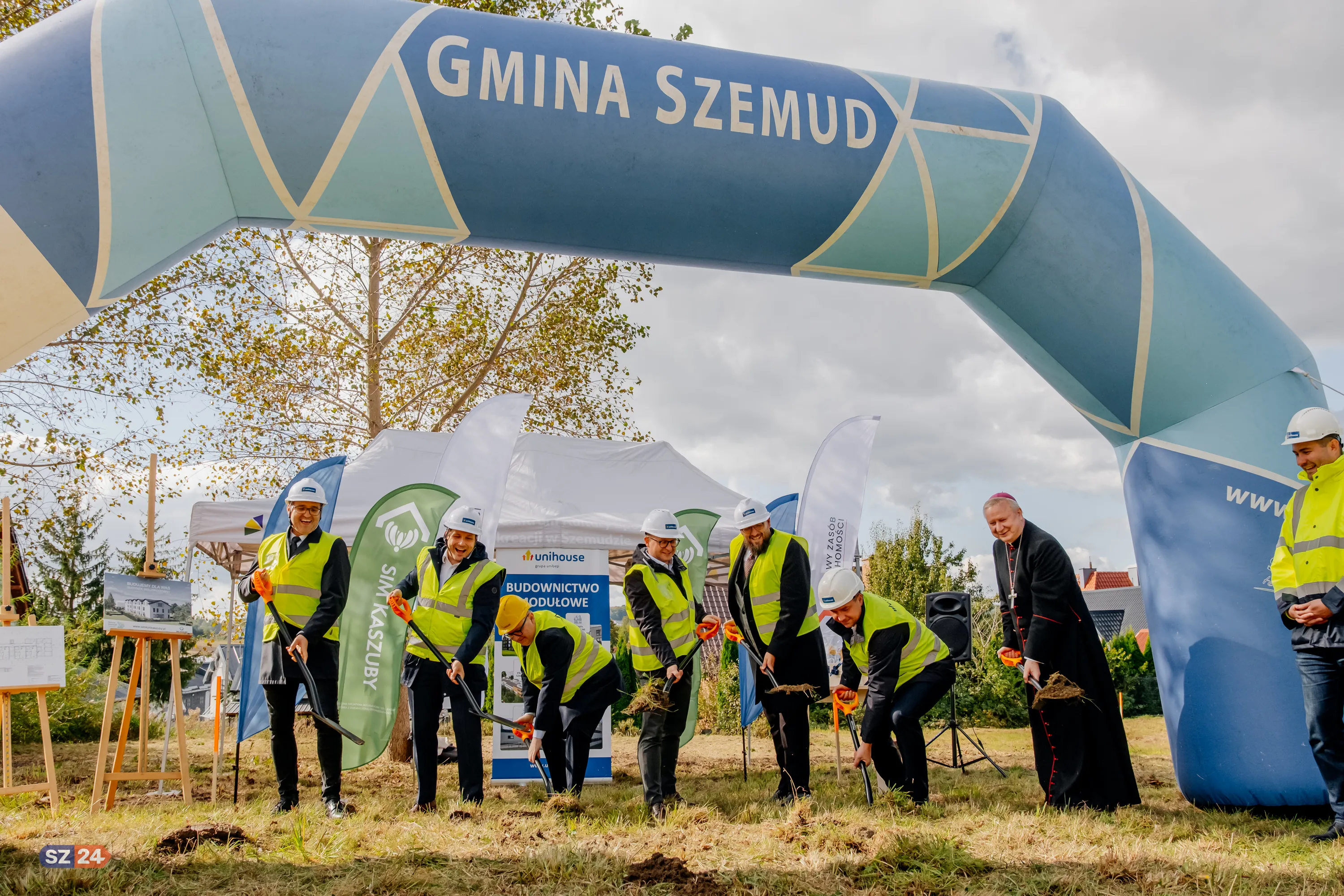 Wczoraj, 2 października 2025 rok przy ulicy Królewskiej w Kielnie odbyła się uroczystość symbolicznego wbicia pierwszej łopaty pod nową inwestycję Społecznej Inicjatywy Mieszkaniowej „KZN - Kaszuby”, która ma zwiększyć dostępność mieszkań na wynajem z umiarkowanym czynszem w regionie. W uroczystości wzięli udział Wójt Gminy Szemud Ryszard Kalkowski oraz Prezes SIM Kaszuby Jarosław Szydłak, a także przedstawiciele władz samorządowych, lokalnej społeczności oraz wykonawcy inwestycji – wiceprezes Zarządu Unihouse S. A., Pan Kamil Kowalczyk. Poświęcenia terenu budowy dokonał Ksiądz Biskup Wiesław Szlachetka.