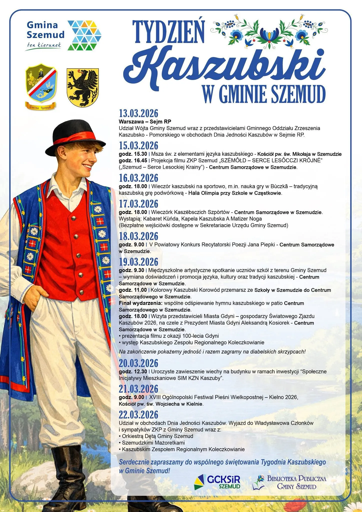 Już jutro, 18 marca 2026 roku o godzinie 9:00, Centrum Samorządowe w Szemudzie wypełni się poezją i prozą Jana Piepki. Wydarzenie to jest jednym z punktów trwającego w naszej gminie Tygodnia Kaszubskiego, a tegoroczna edycja zapowiada się rekordowo.