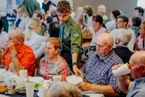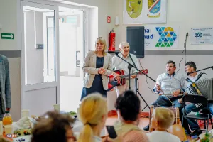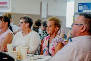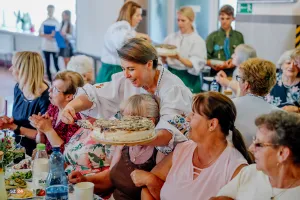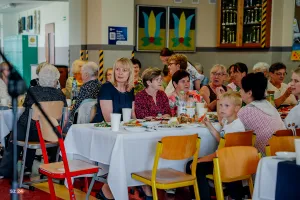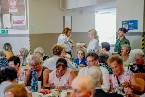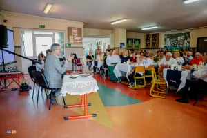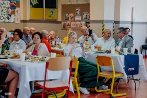 Spotkanie odbyło się 4 czerwca w Szkole Podstawowej w Łebieńskiej Hucie pozyskali środki, organizują spotkania dla seniorów. i było drugim z sześciu spotkań, które zostały zaplanowane na ten rok. Poza poczęstunkiem był również zespół muzyczny Damps Senior Band oraz spotkanie autorskie z dr Eugeniuszem Pryczkowskim. Lokalny autorek książek oraz programów tv jak się okazało, jest absolwentem SP w Łebieńskiej Hucie. Pan dr Eugeniusz Pryczkowski opowiadał o swojej twórczości w formie wywiadu, który przeprowadziły dzieci.