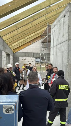 Zgodnie z obyczajem, wiecha na dachu to moment podziękowania dla ekipy budowlanej oraz wszystkich zaangażowanych w proces inwestycyjny. Podczas piątkowego spotkania budynek został poświęcony przez proboszcza parafii w Bojanie, ks. Piotra Maciołka.