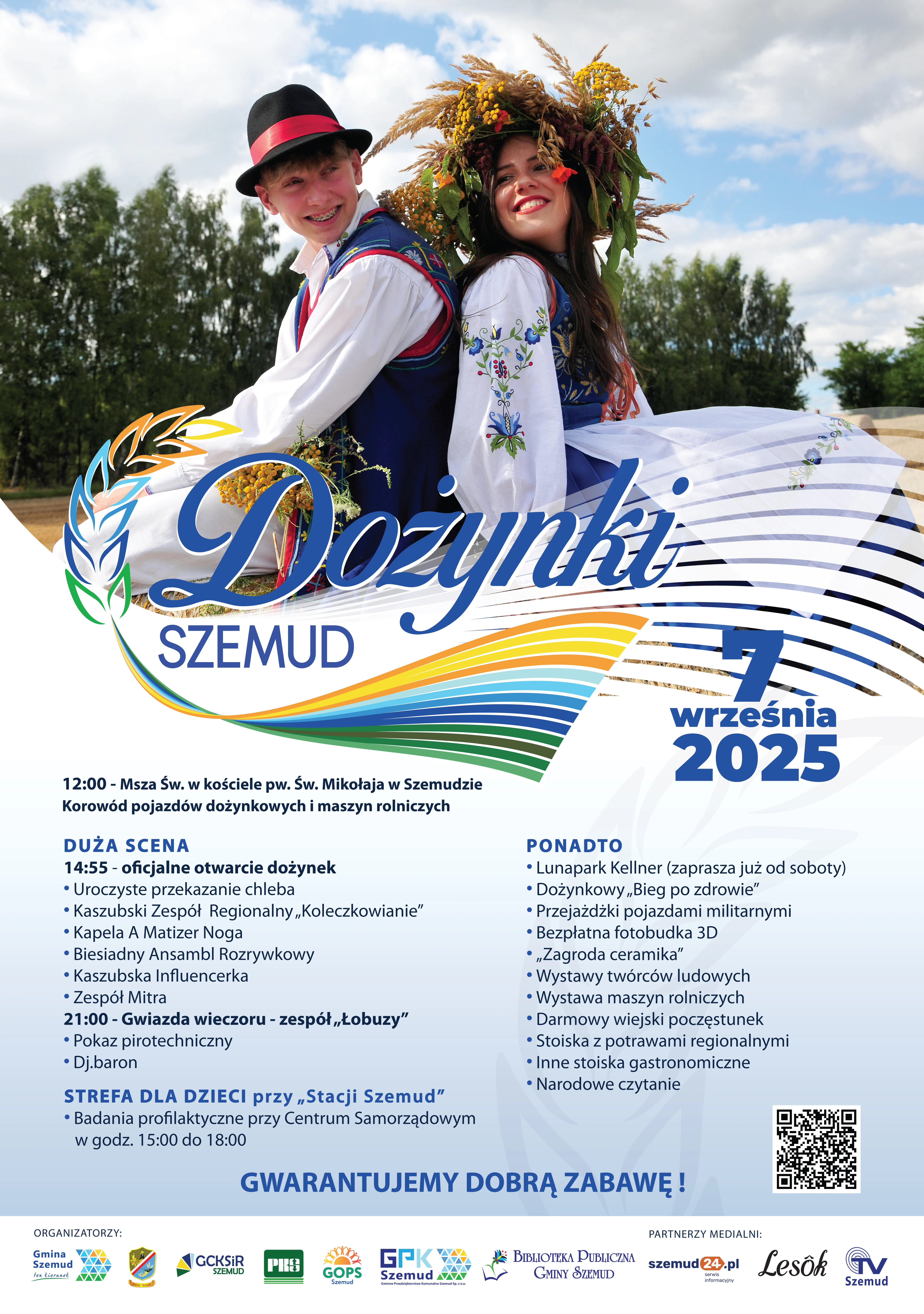 Nadchodzący weekend w gminie Szemud upłynie pod znakiem hucznej zabawy i tradycji. Mieszkańcy i goście będą świętować koniec żniw przez dwa dni, podczas których odbędą się zarówno wydarzenia dedykowane młodzieży, jak i Dożynki Gminne w Szemudzie.
