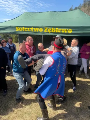 Po części oficjalnej przyszedł czas na zasłużony odpoczynek. Organizatorzy zaprosili wszystkich uczestników na integracyjny poczęstunek na świeżym powietrzu. Na łące stanął grill, a wspaniała atmosfera sprzyjała rozmowom i zacieśnianiu sąsiedzkich więzi. Duża frekwencja mieszkańców obecnych na wydarzeniu potwierdziła, że sołectwo Zęblewo to zgrana i silna wspólnota.