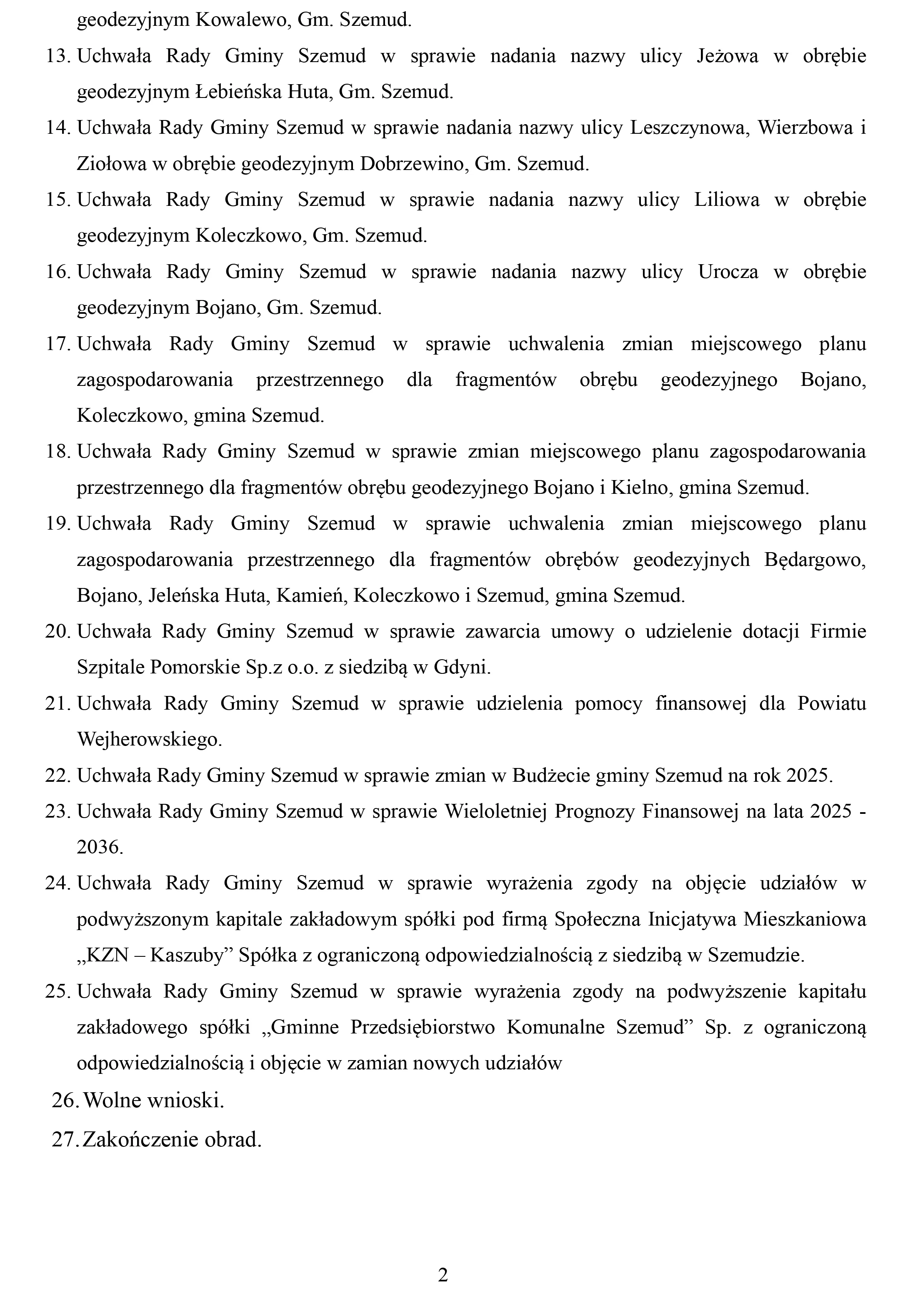 Podczas XVIII sesji Rady Gminy Szemud nastąpi wręczenie nagrody w konkursie meldunkowym. Kolejnymi punktami obrad są głosowania nad uchwałami Rady Gminy Szemud w sprawie: